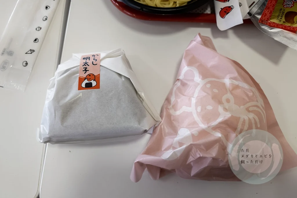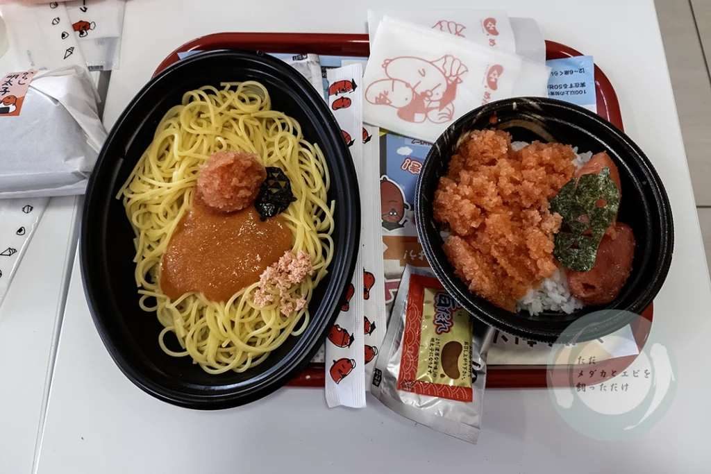 頼んだのは「明太ぶたまん」「ジャンボおにぎり できたて明太子」「明太パスタ」「鬼盛り!めんたい丼」の4品。