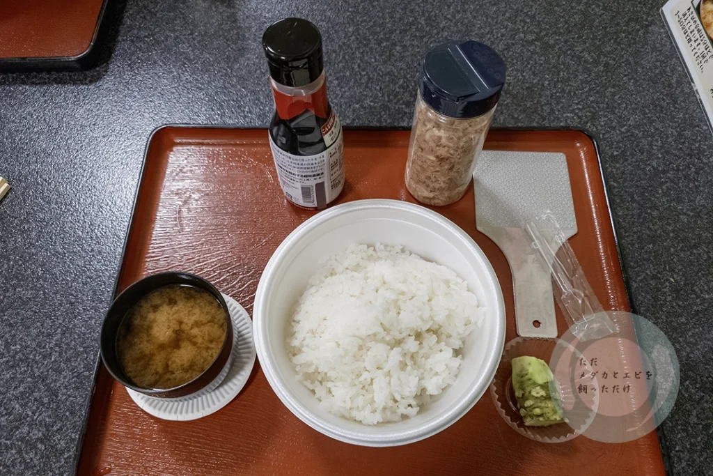 食堂の壁際にはご飯のおともコーナーがあり、店内でも売られているわさびふりかけなどを自由にかけられました。