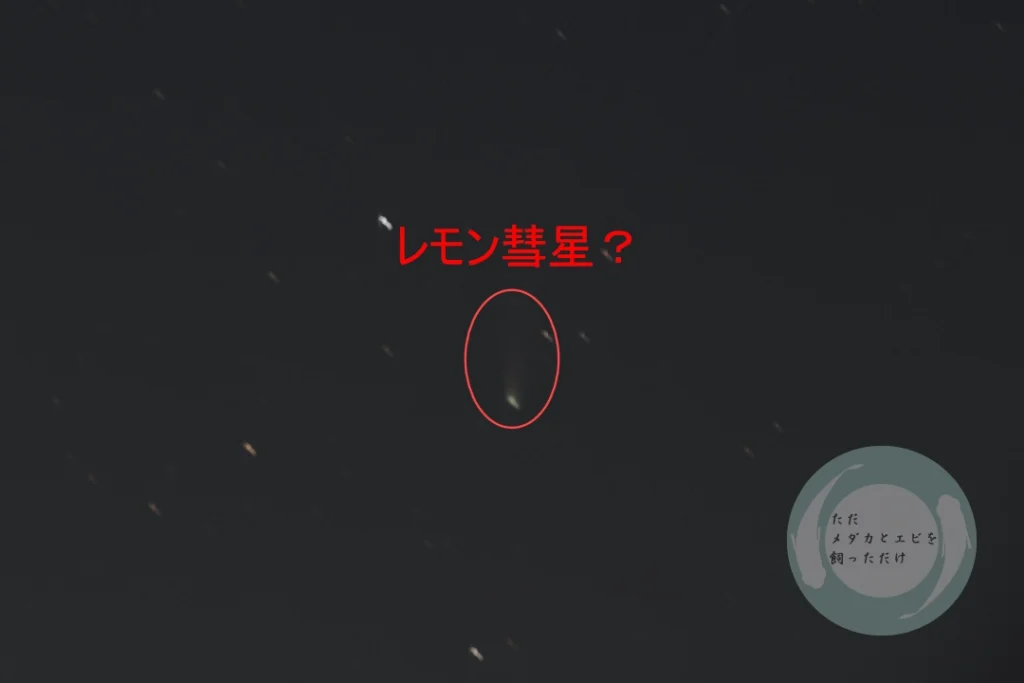 それでも、寒さに震えながらカメラの望遠レンズでレモン彗星を探し、なんとかそれらしきものを見つけることができました。