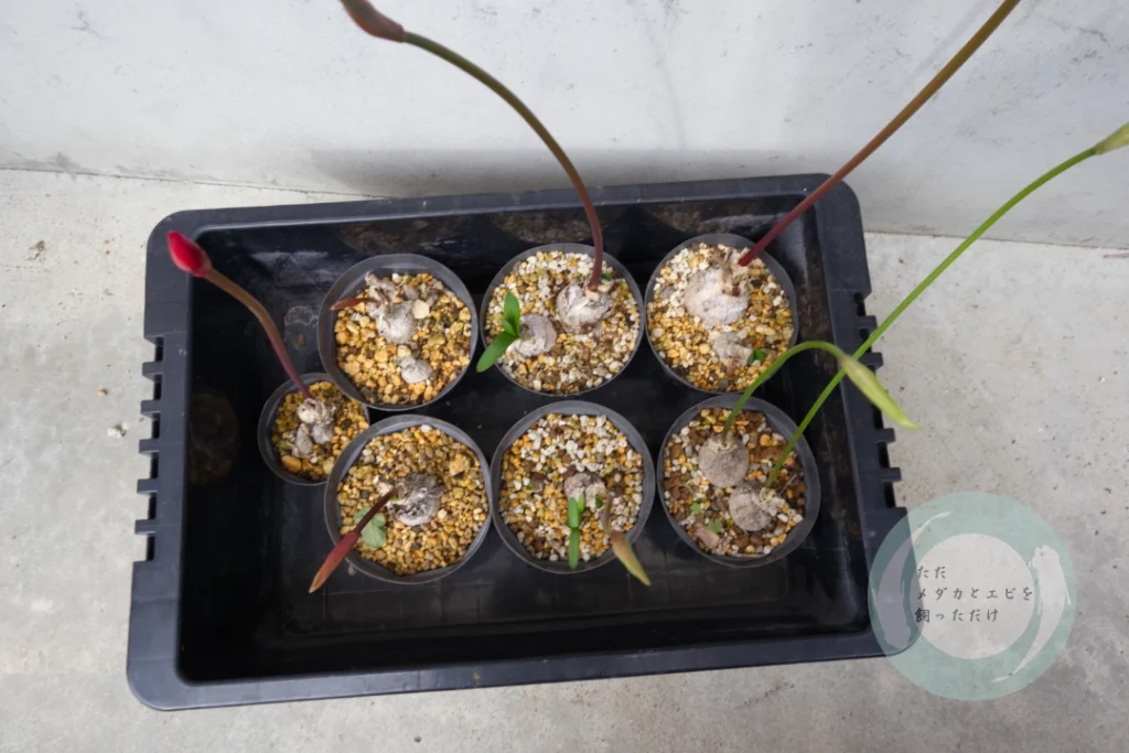 花芽が出ていないものも葉が出はじめているので、今年もなんとか夏越しができたようです。