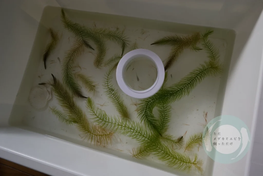 メダカたちは、深海の稚魚が残念ながらすべて★になってしまい、現在は成魚4匹と幼魚2匹の合計6匹です。