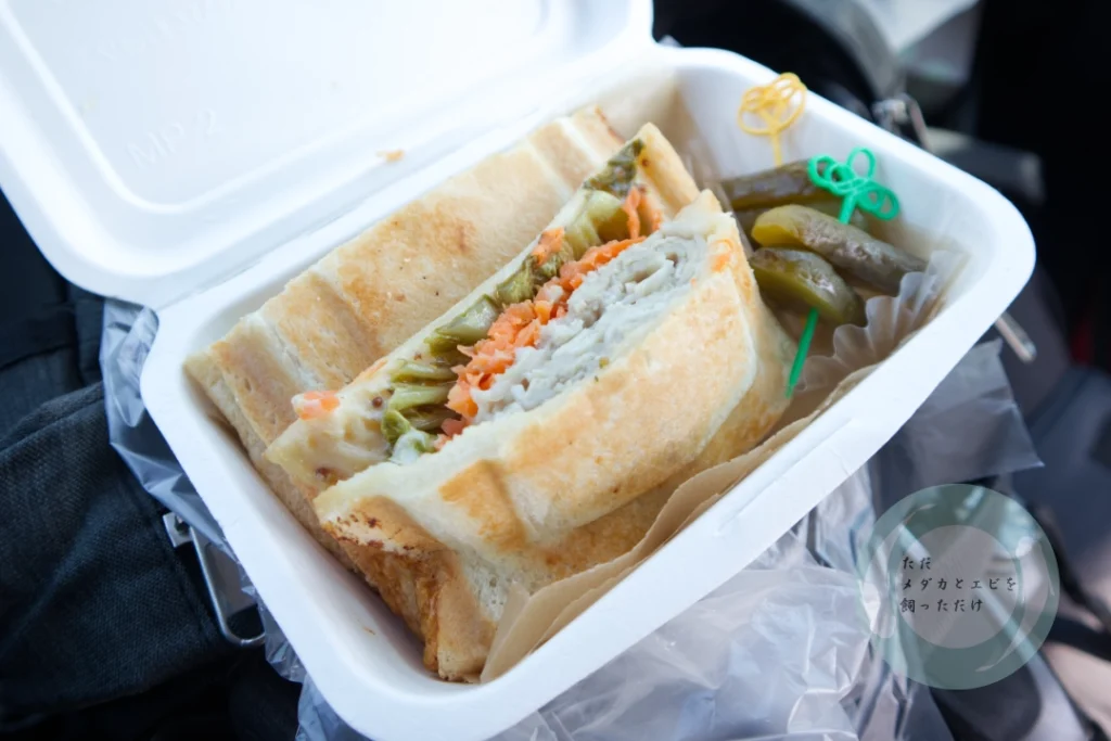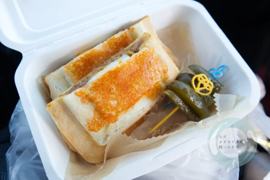 長坂養蜂場さんのキッチンカーが出店されており、カレーチーズとハニーローストポークの2種類のホットサンドがあったので買ってみました。
