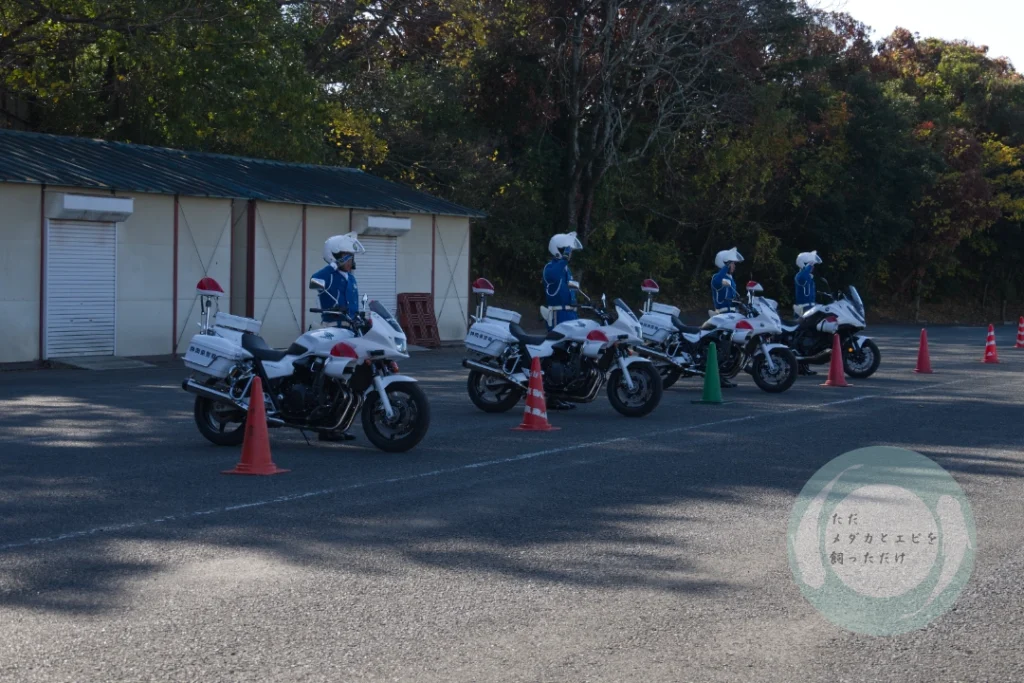 白バイデモンストレーションは、選手の宿舎などがある関係者エリアで行われ、以前見に行った菊川警察署の時とはメンバーが異なっていました。