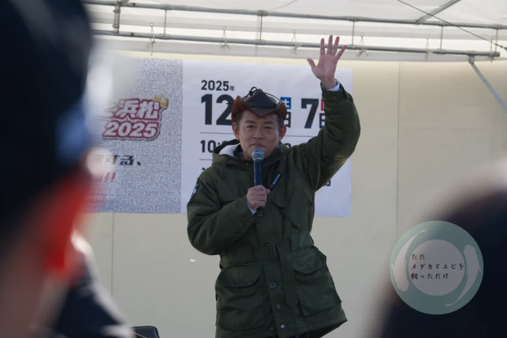 お目当ては、ゲストの「ハンバーグ師匠」のトークショーと、そのあとに行われる静岡県警の白バイデモンストレーション。